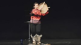 À Nuuk, la capitale du Groenland, nous avons droit à un spectacle : tout d'abord, voici un chant avec accompagnement au tambour groenlandais...