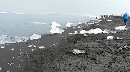 En rejoignant la mer, les morceaux de glace se déposent sur le sable noir, tels de véritables diamants...